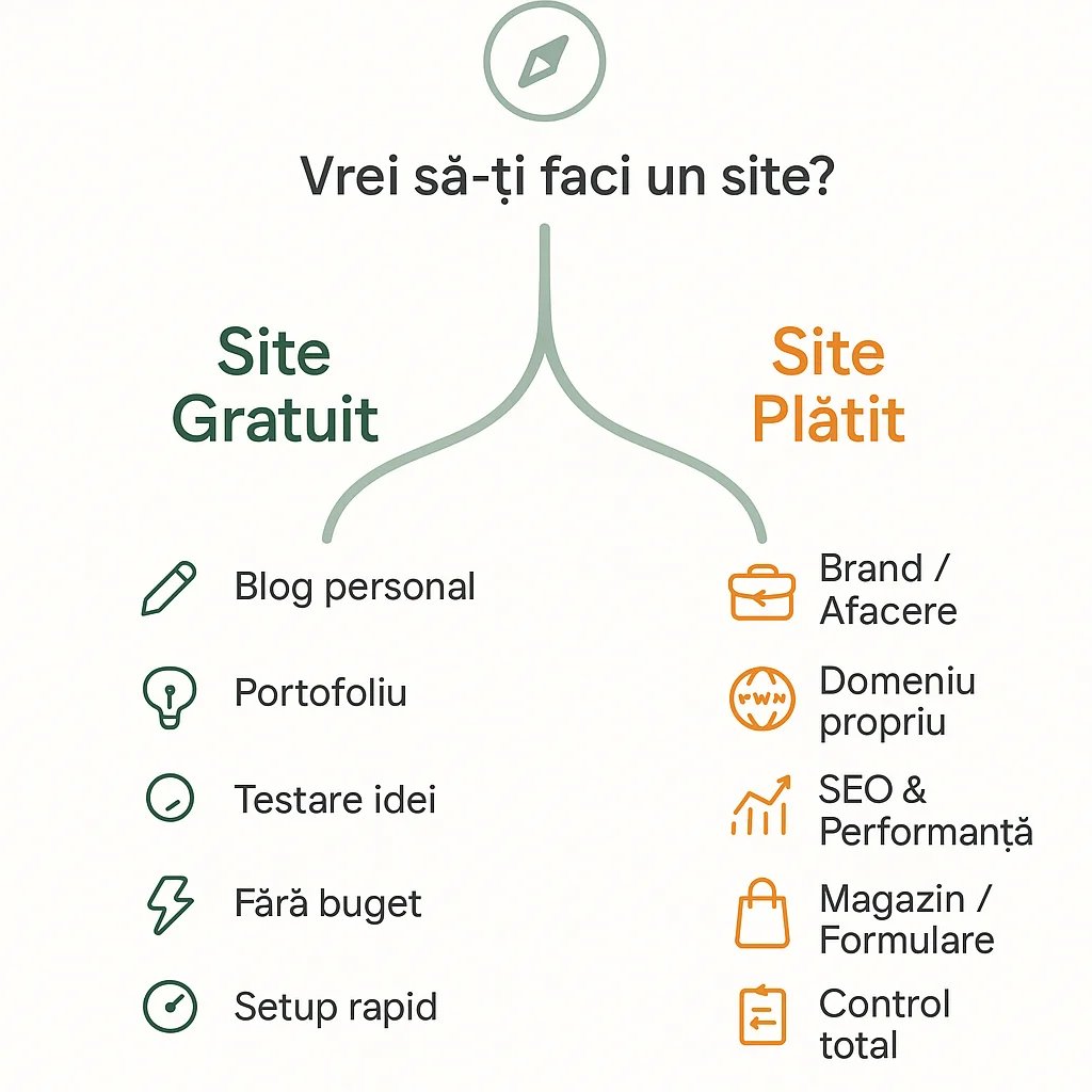În final, alegerea depinde strict de obiectivele tale. Dacă ești la început și vrei doar să experimentezi, un site gratuit este o alegere excelentă. Dacă însă ai un proiect serios și vrei să construiești un brand solid, o soluție plătită este, fără îndoială, o investiție necesară.